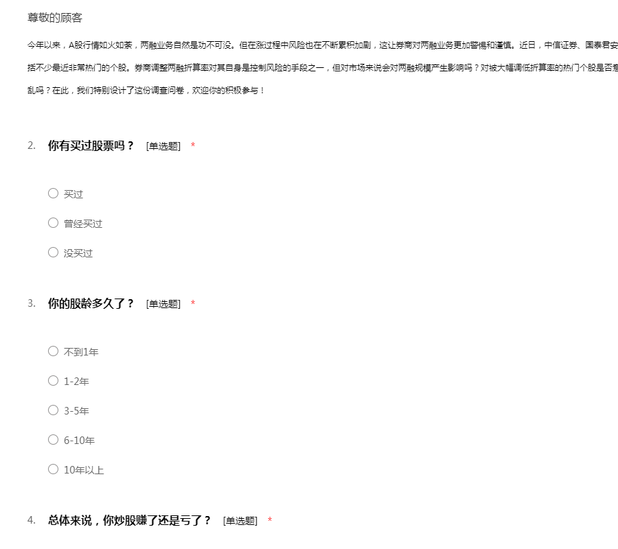 今年以来,A股行情如火如荼,两融业务自然是功不可没。但在涨过程中风险也在不断累积加剧,这让券商对两融业务更加警惕和谨慎。近日,中信证券、国泰君安等大券商都对两融折算率进行了较大的调整,包括不少最近非常热门的个股。券商调整两融折算率对其自身是控制风险的手段之一,但对市场来说会对两融规模产生影响吗?对被大幅调低折算率的热门个股是否意味着风险信号加剧?持续亢奋的市场节奏会被打乱吗?在此,我们特别设计了这份调查问卷,欢迎你的积极参与!