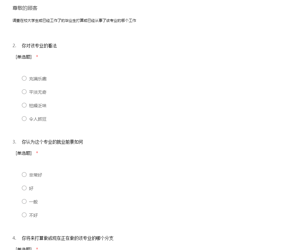 调查在校大学生或已经工作了的毕业生打算或已经从事了该专业的哪个工作