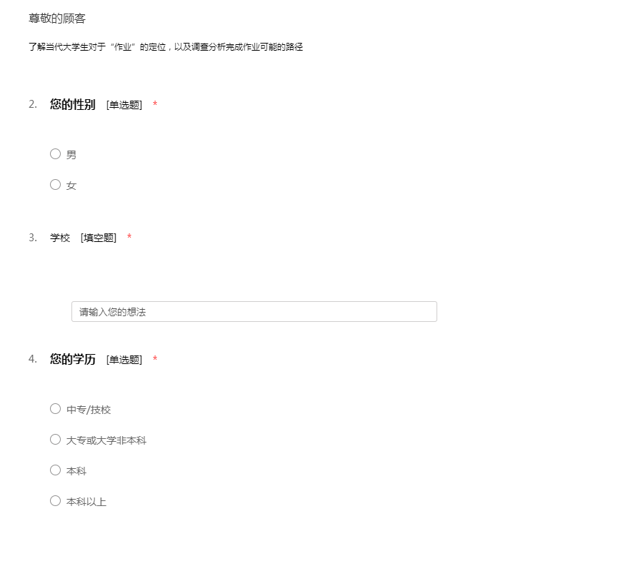 了解当代大学生对于“作业”的定位,以及调查分析完成作业可能的路径