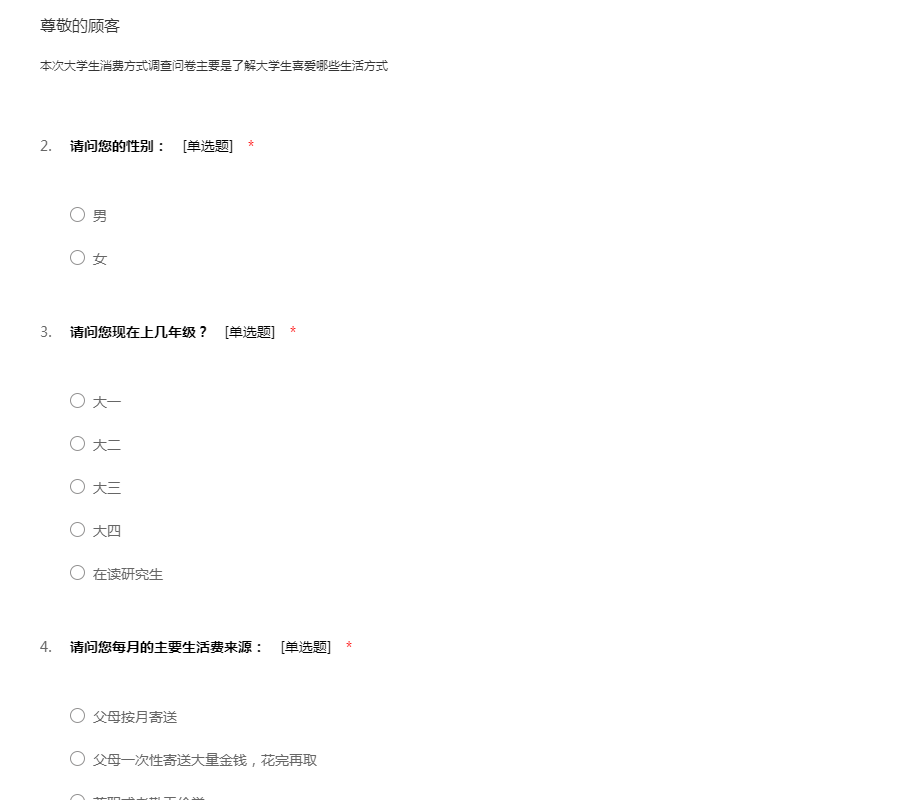 本次大学生消费方式调查问卷主要是了解大学生喜爱哪些生活方式