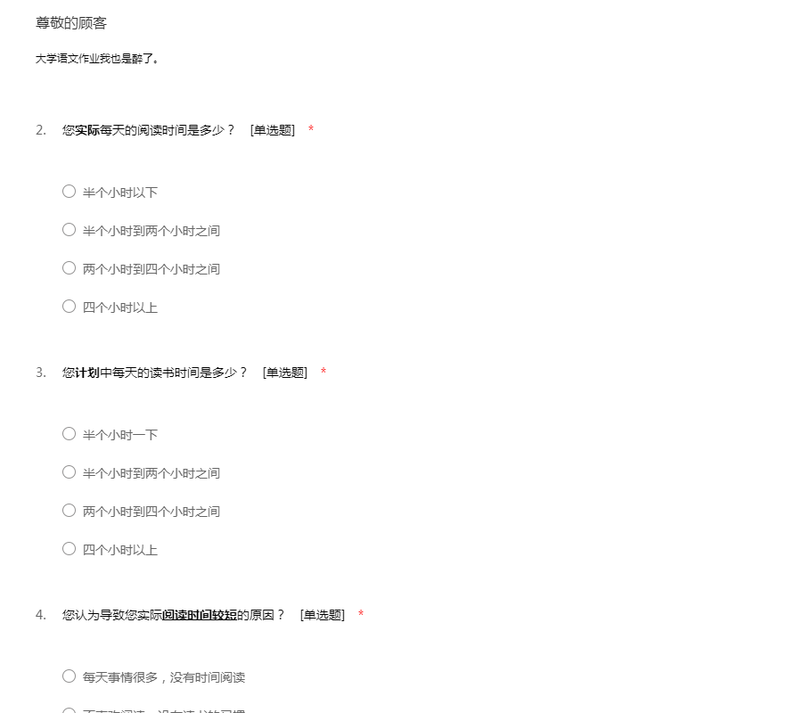 本次问卷调查意在了解当代大学生的恋爱实际情况,您的真实回答对我们来说十分宝贵!感谢您在百忙之中回答此卷!51调查网(我要调查网)谢谢您的参与。