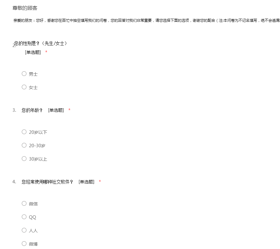 亲爱的朋友:您好,感谢您在百忙中抽空填写我们的问卷,您的回答对我们非常重要,请您选择下面的选项,谢谢您的配合(注:本问卷为不记名填写,绝不会透漏您的个人隐私)。