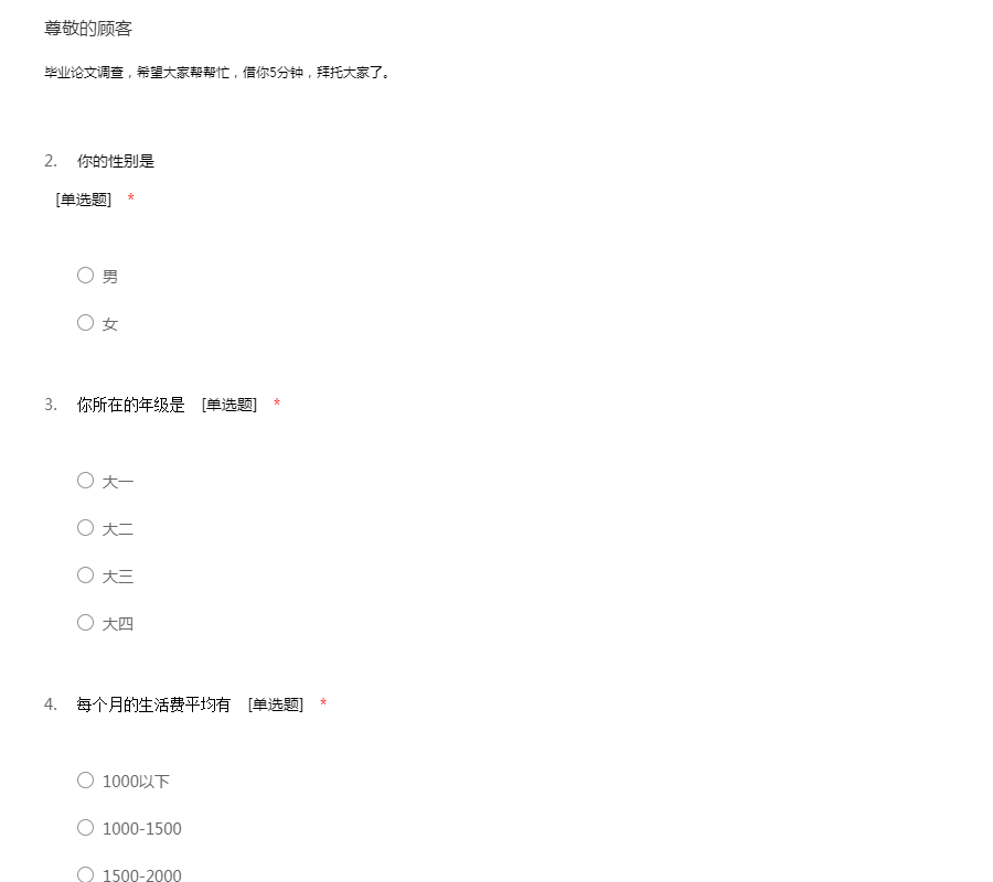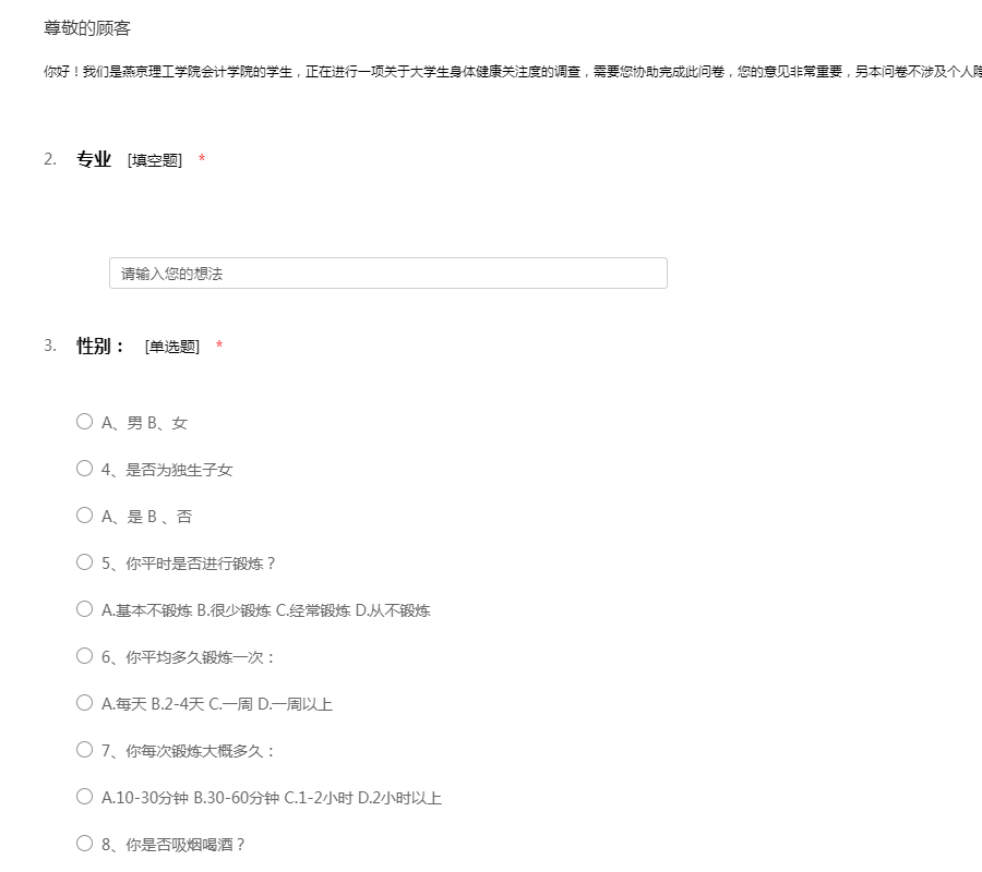 本调查问卷分为两大板块:
