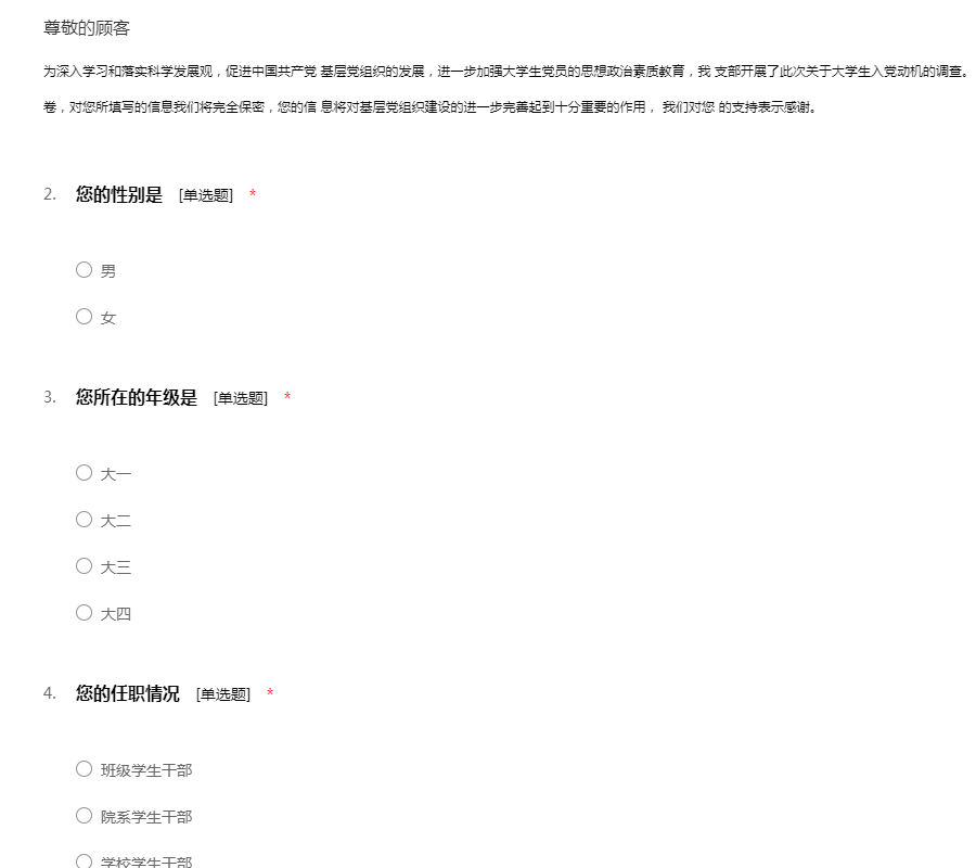 工作环境:包含工作管理环境和周边的自然环境,还有工作的安全性:该要项的设置目的是用于测量您的员工如何看待诸如他们的工作环境条件、设备工具的质量以及在工作场所当中对于安全的整体意识等方面问题。每一个组织都要对员工的健康和安全负责。一个缺乏安全保障的工作环境将导致各类事故、法律诉讼和工作延迟等一系列问题。所有这些事故可能给您的组织带来非常巨大的损失。该要项下的所有问题将调查您的员工对于公司的设施工具是否满意,他们是否相信工作是在以一种安全的方式进行,以及提供给他们的工具设备是否能够满足他们去安全成功地完成工作。员工工作环境满意度问卷模板由我要调查网(http://www.51diaocha.com)提供。