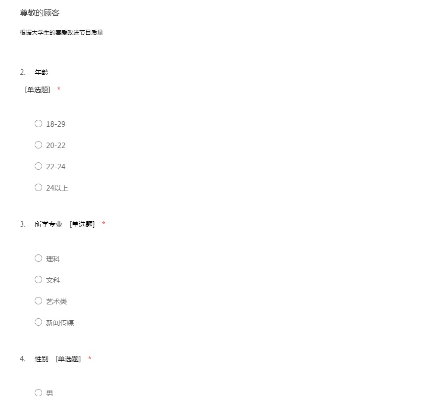 本次问卷调查意在了解当代大学生的恋爱实际情况,您的真实回答对我们来说十分宝贵!感谢您在百忙之中回答此卷!51调查网(我要调查网)谢谢您的参与。