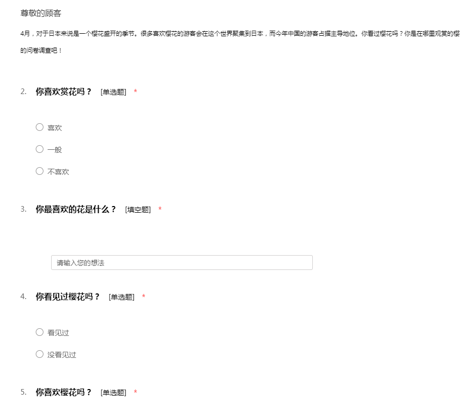 4月,对于日本来说是一个樱花盛开的季节。很多喜欢樱花的游客会在这个世界聚集到日本,而今年中国的游客占据主导地位。你看过樱花吗?你是在哪里观赏的樱花?是否有到过日本观赏呢?快来参与我们此次的问卷调查吧!
