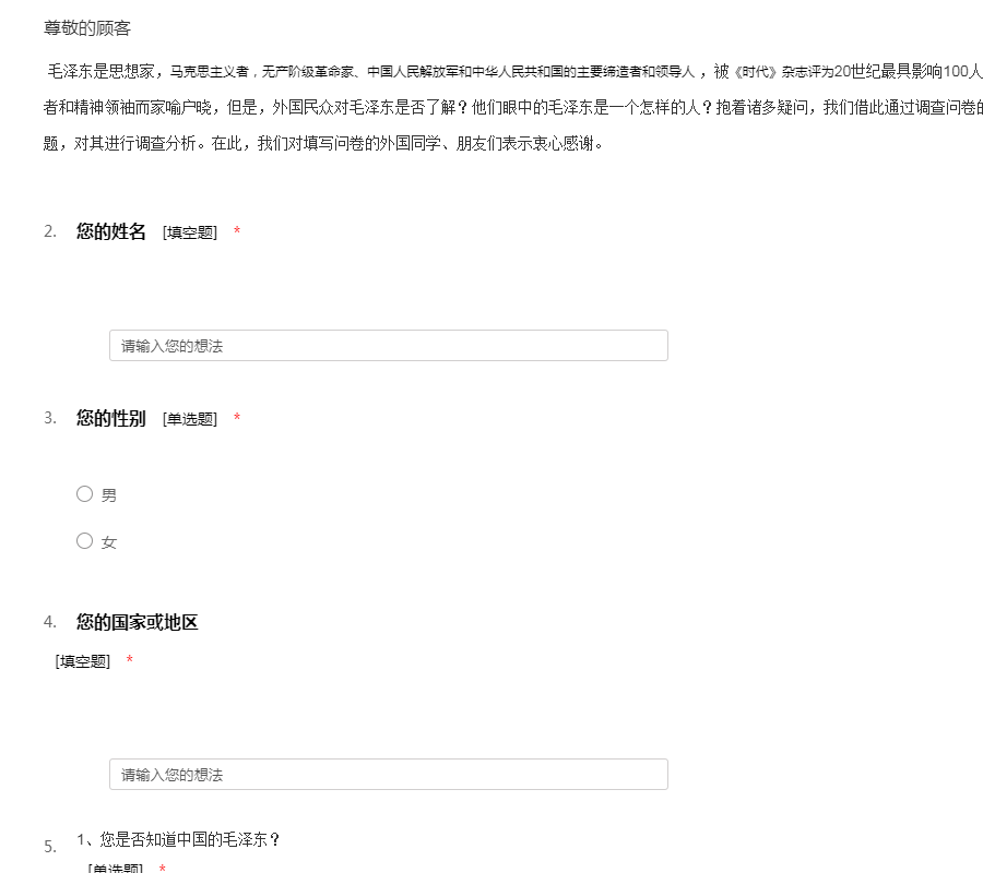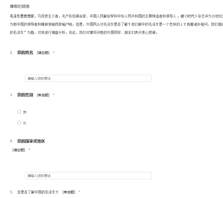 外国人眼中的毛泽东调查问卷