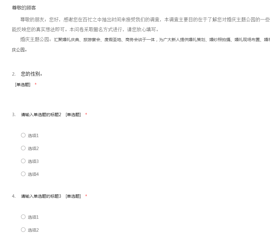 婚庆主题公园调查问卷