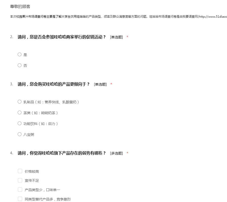 哇哈哈市场调查问卷