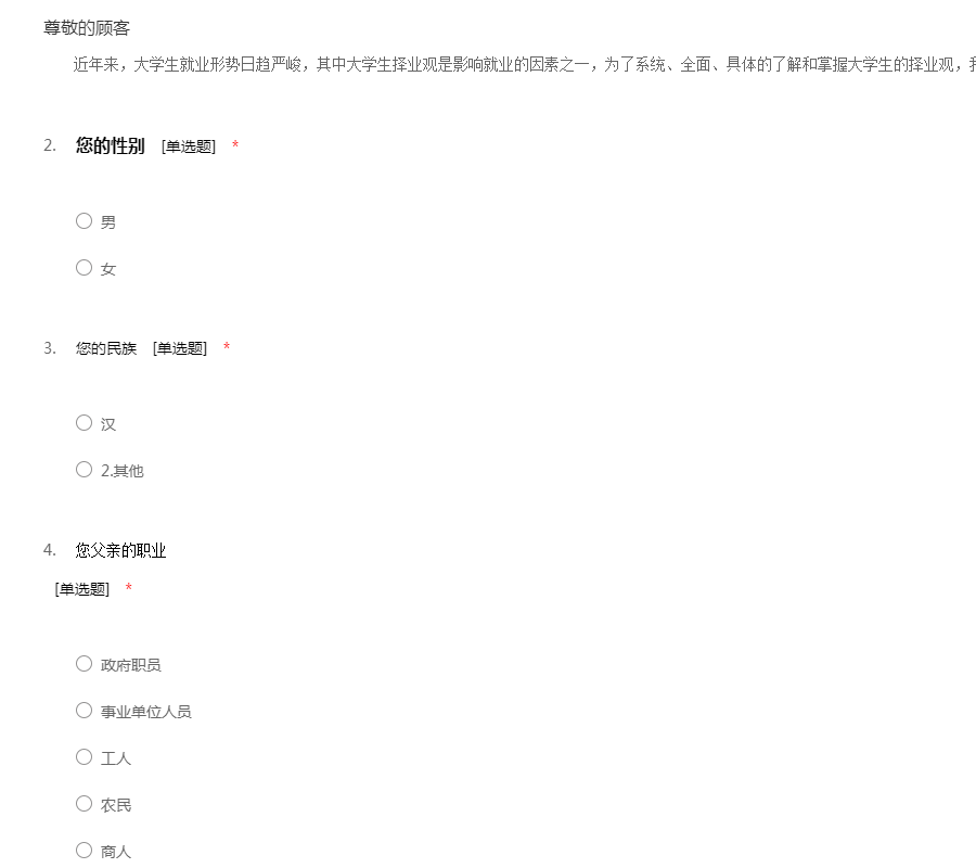 大学生择业观调查问卷