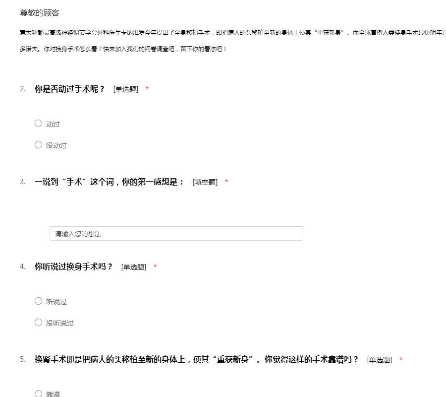 换头手术看法问卷调查表