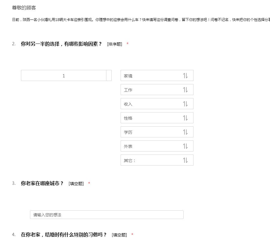 日前,陕西一名小伙婚礼用18辆大卡车迎亲引围观。你理想中的迎亲会用什么车?快来填写这份调查问卷,留下你的想法吧!问卷不记名,快来把你的个性选择分享给小伙伴们吧!嘿嘿~~