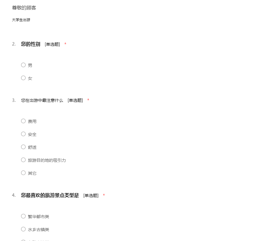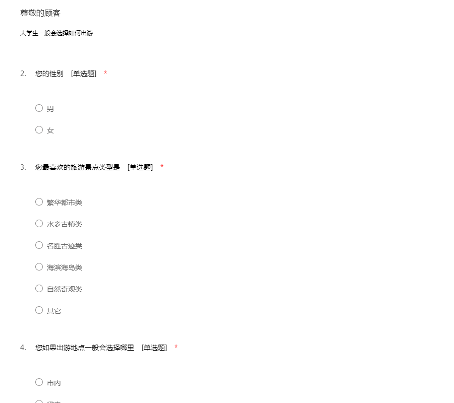 大学生旅游意愿调查问卷