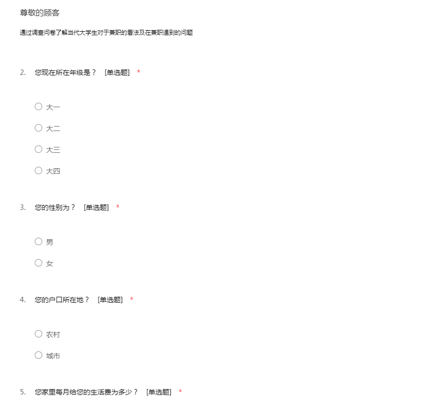 通过调查问卷了解当代大学生对于兼职的看法及在兼职遇到的问题
