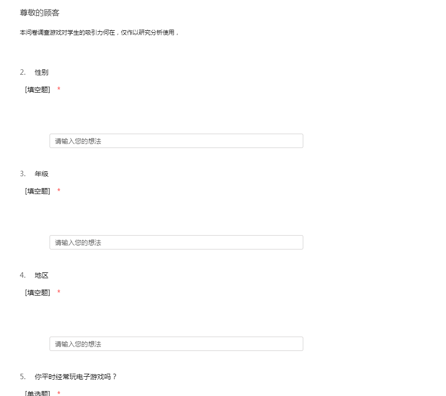 本问卷调查游戏对学生的吸引力何在,仅作以研究分析使用,