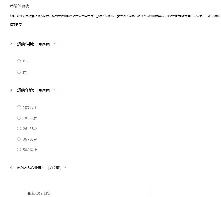 您好!欢迎您参加梦想调查问卷,您的支持和配合对本人非常重要,恳请大家协助。梦想调查问卷不涉及个人机密或隐私,所得的数据纯属学术研究之用,不会被用于任何商业用途。题目答案无对错之分,感谢各位的参与
