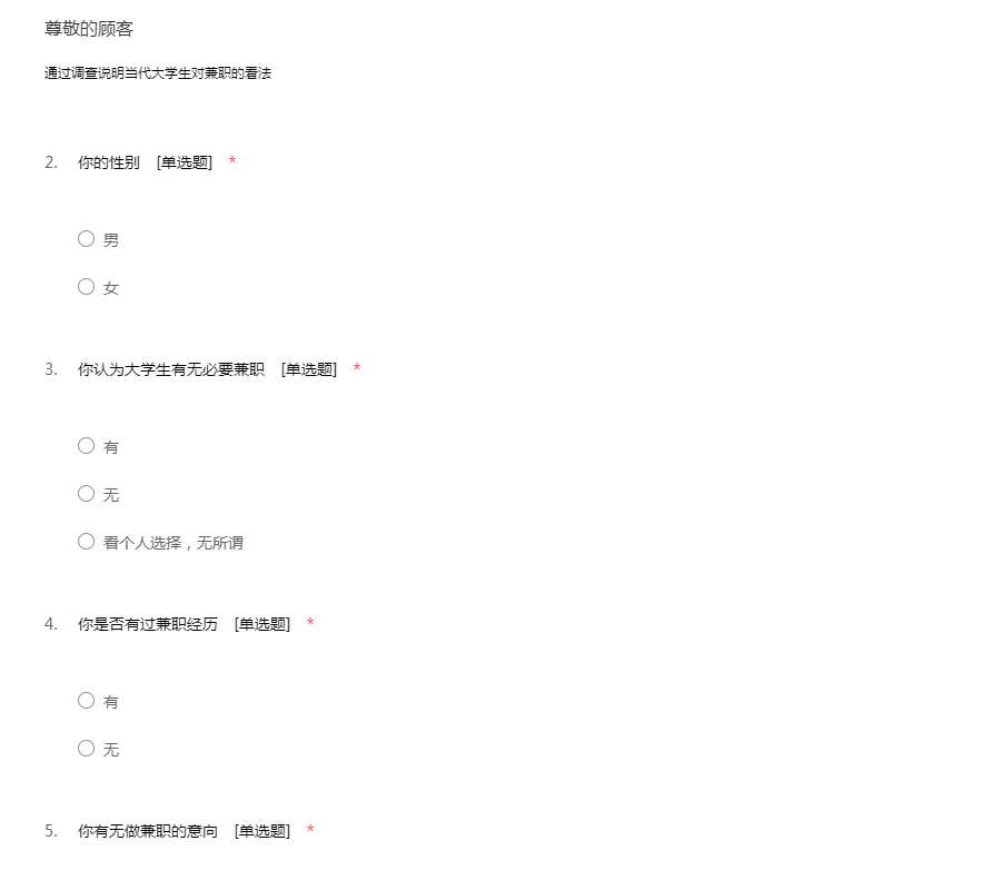 本次问卷调查意在了解当代大学生的恋爱实际情况,您的真实回答对我们来说十分宝贵!感谢您在百忙之中回答此卷!51调查网(我要调查网)谢谢您的参与。