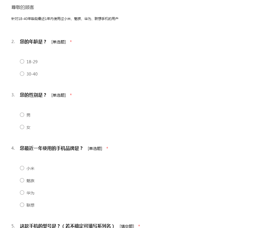 针对18-40年龄段最近1年内使用过小米、魅族、华为、联想手机的用户
