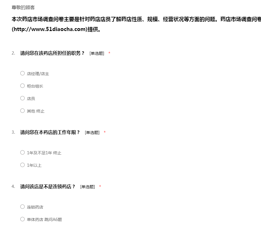 本次药店市场调查问卷主要是针对药店店员了解药店性质、规模、经营状况等方面的问题。药店市场调查问卷模板是由我要调查网(http://www.51diaocha.com)提供。