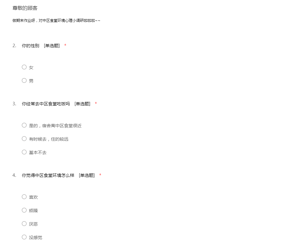 做期末作业呀,对中区食堂环境心理小调研啦啦啦~~