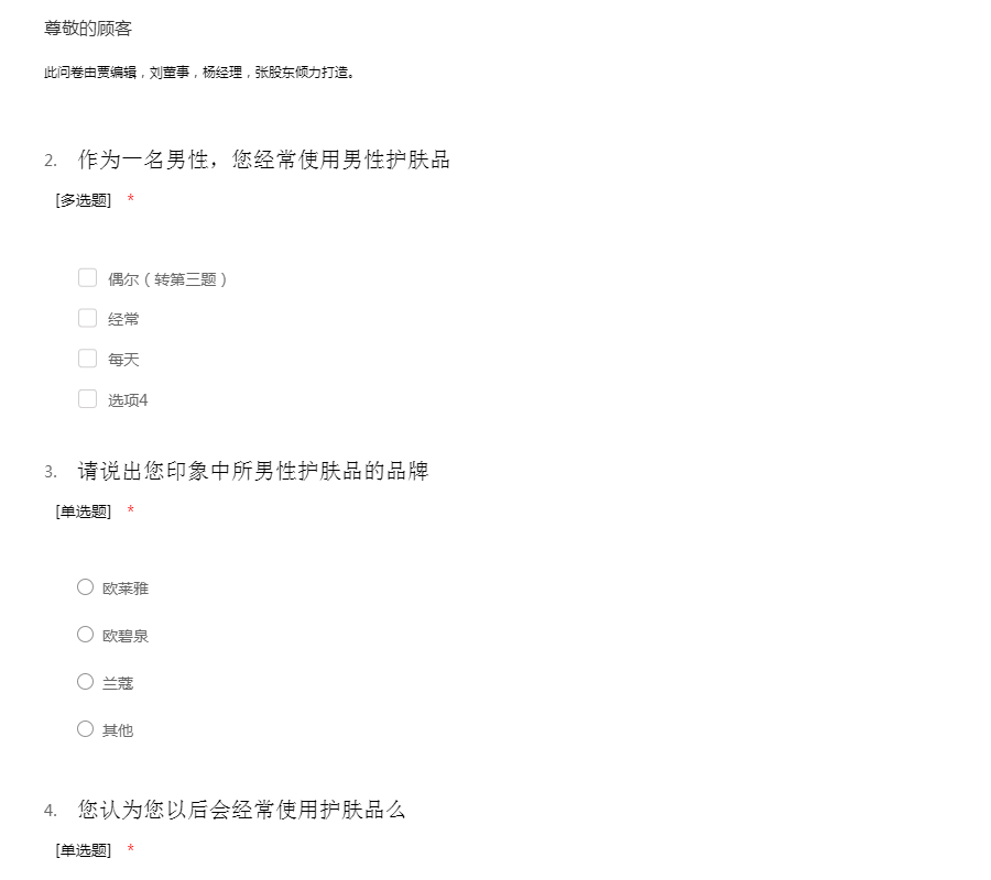 此问卷由贾编辑,刘董事,杨经理,张股东倾力打造。