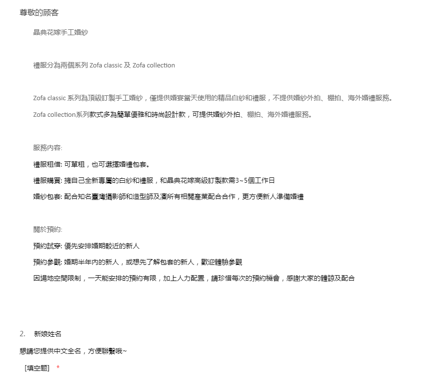 預約參觀: 婚期半年內的新人,或想先了解包套的新人,歡迎體驗參觀