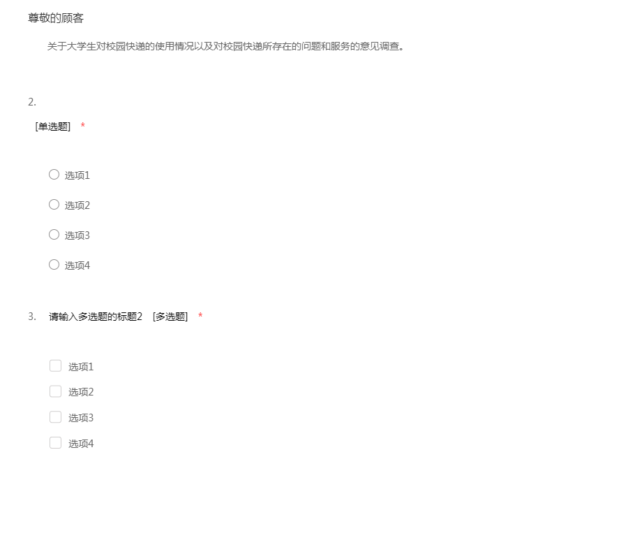 关于大学生对校园快递的使用情况以及对校园快递所存在的问题和服务的意见调查。