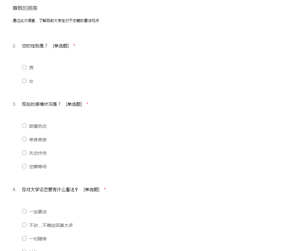 通过此次调查,了解目前大学生对于恋爱的看法观点