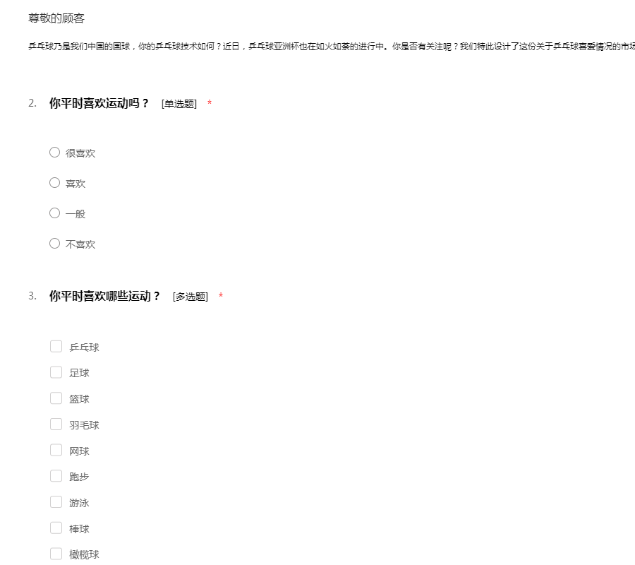 乒乓球乃是我们中国的国球,你的乒乓球技术如何?近日,乒乓球亚洲杯也在如火如荼的进行中。你是否有关注呢?我们特此设计了这份关于乒乓球喜爱情况的市场调查,欢迎你的积极参与!