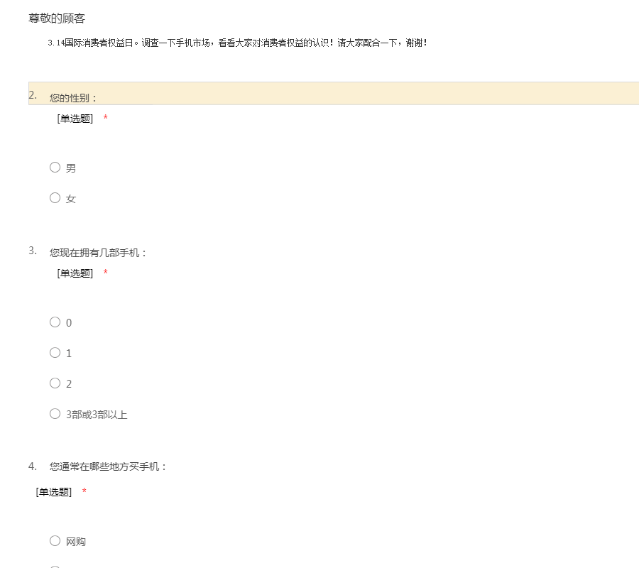 3.14国际消费者权益日。调查一下手机市场,看看大家对消费者权益的认识!请大家配合一下,谢谢!