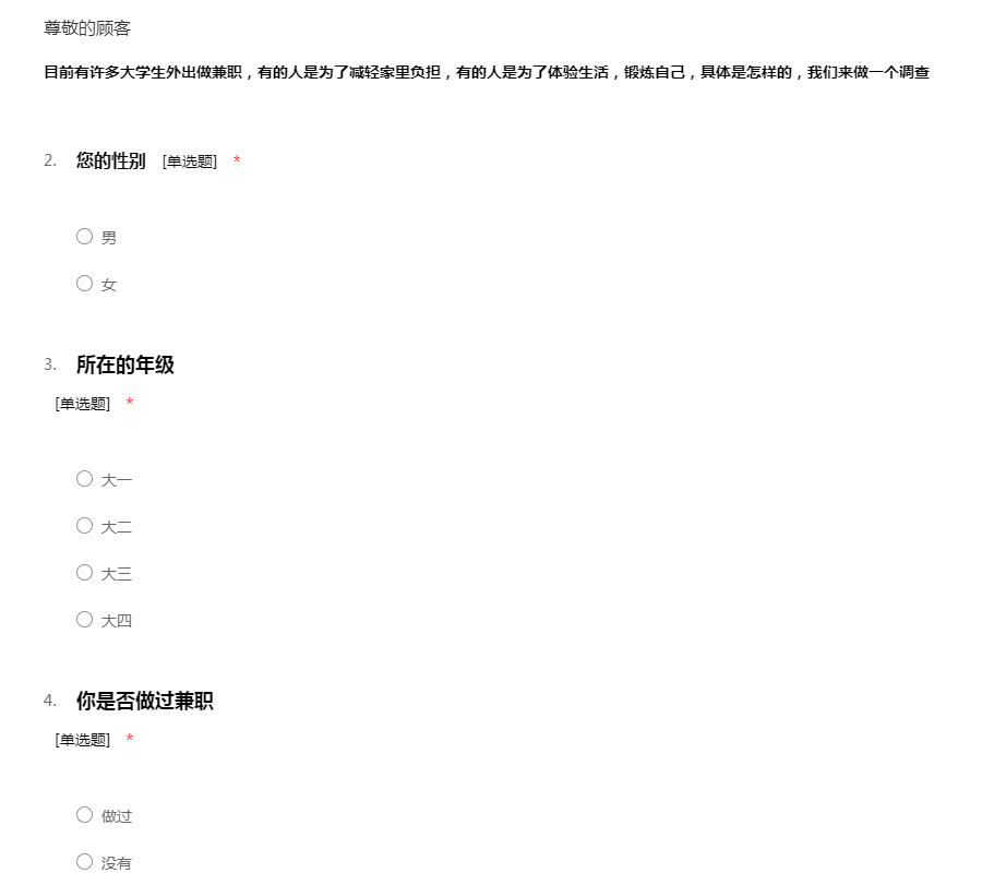 目前有许多大学生外出做兼职,有的人是为了减轻家里负担,有的人是为了体验生活,锻炼自己,具体是怎样的,我们来做一个调查