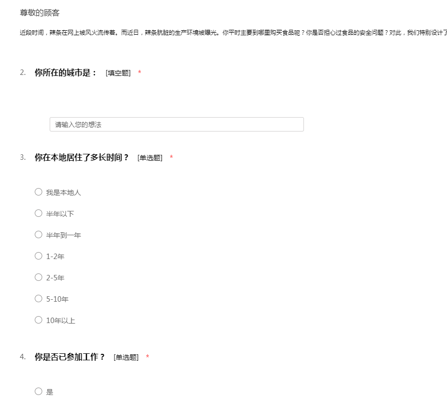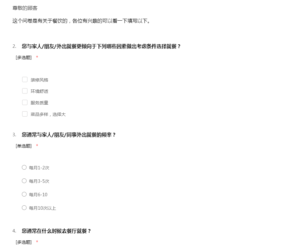 这个问卷是有关于餐饮的,各位有兴趣的可以看一下填写以下。