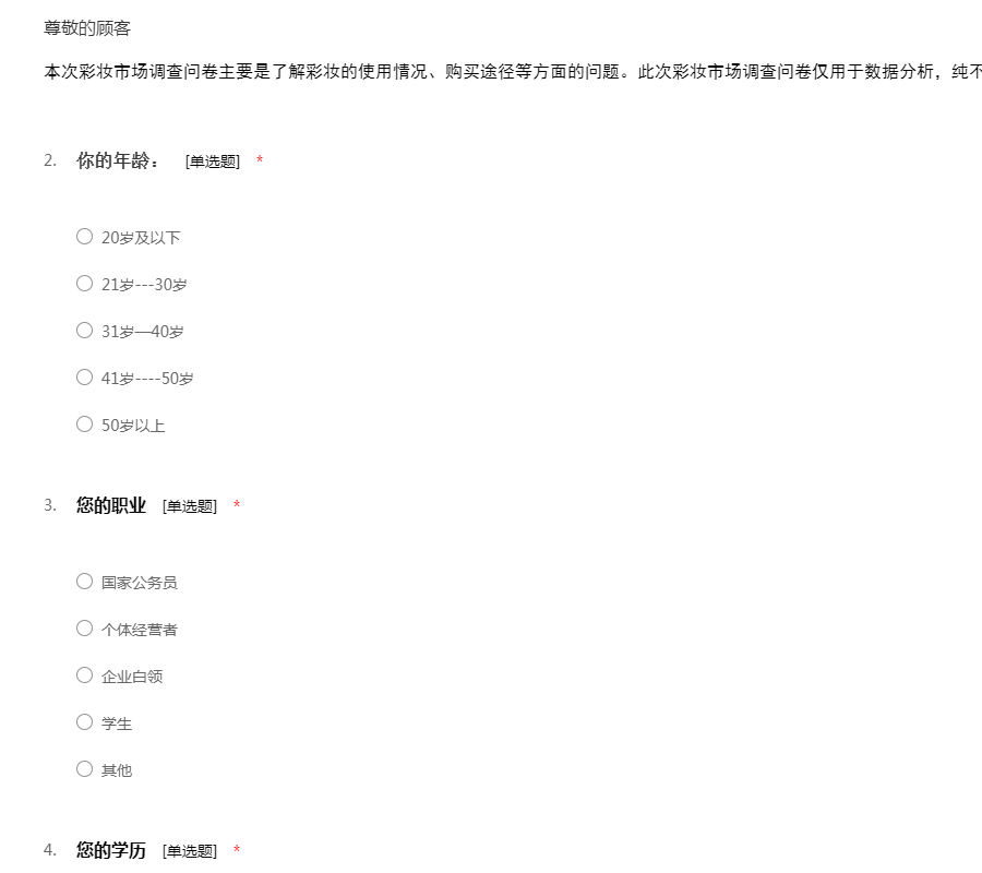本次彩妆市场调查问卷主要是了解彩妆的使用情况、购买途径等方面的问题。此次彩妆市场调查问卷仅用于数据分析,纯不会透露大家的隐私。