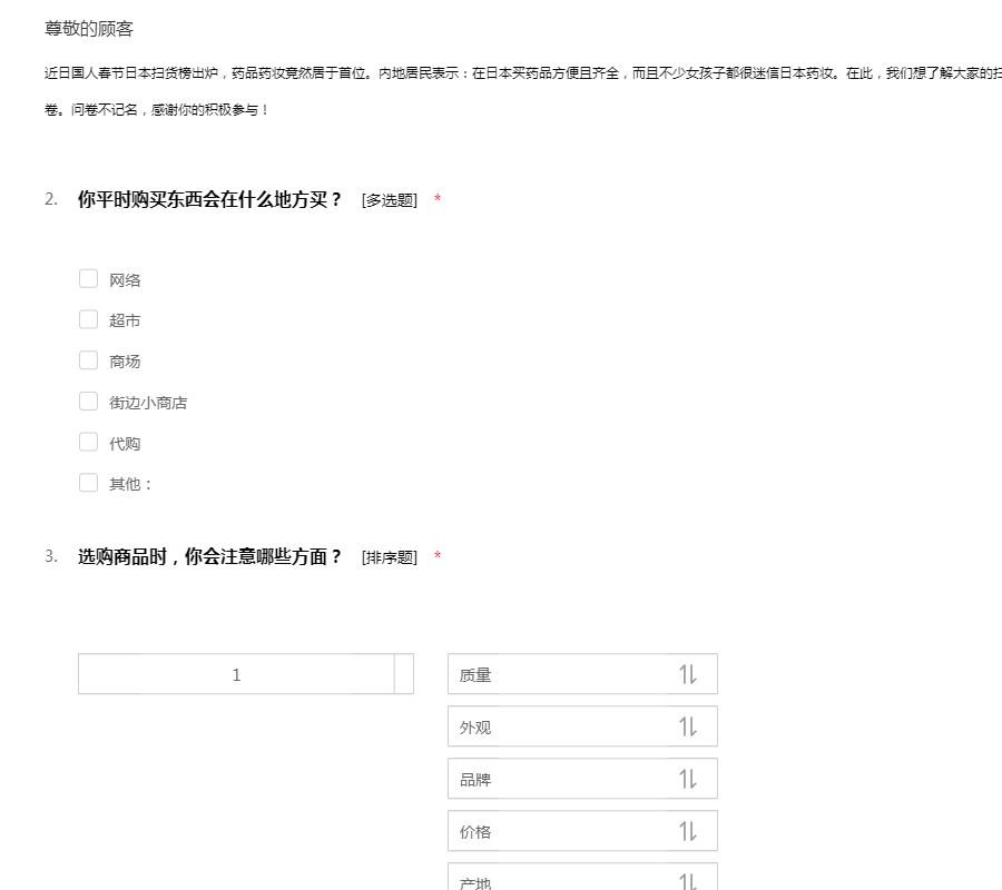 近日国人春节日本扫货榜出炉,药品药妆竟然居于首位。内地居民表示:在日本买药品方便且齐全,而且不少女孩子都很迷信日本药妆。在此,我们想了解大家的扫货情况以及对此的看法,特别设计了这份调查问卷。问卷不记名,感谢你的积极参与!