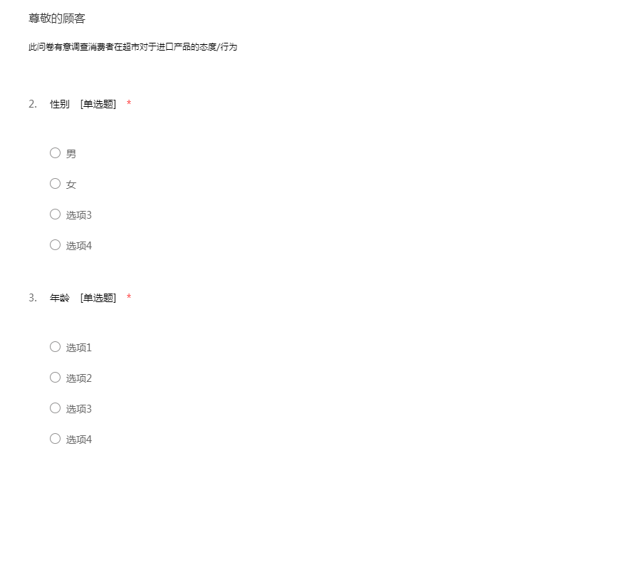 此问卷有意调查消费者在超市对于进口产品的态度/行为