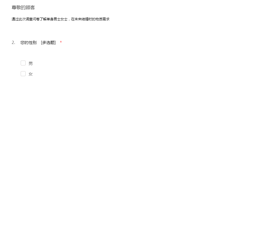 通过此次调查问卷了解单身男士女士,在未来结婚时的物质需求