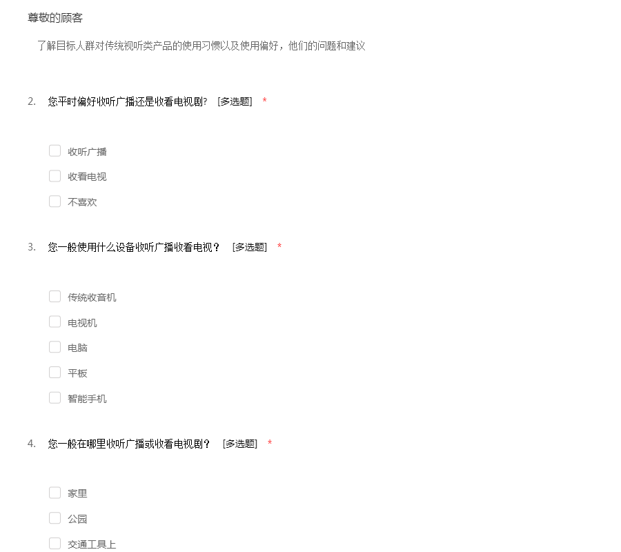 了解目标人群对传统视听类产品的使用习惯以及使用偏好,他们的问题和建议