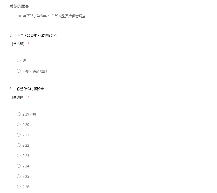 2015年下郑小学六年(1)班大型聚会问卷调查