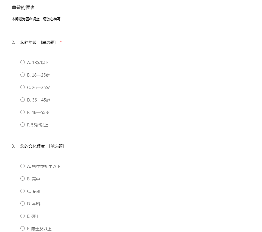 本问卷为匿名调查,请放心填写