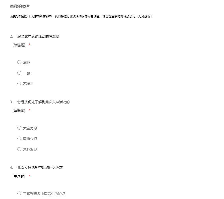 德力西大厦中医义诊问卷调查