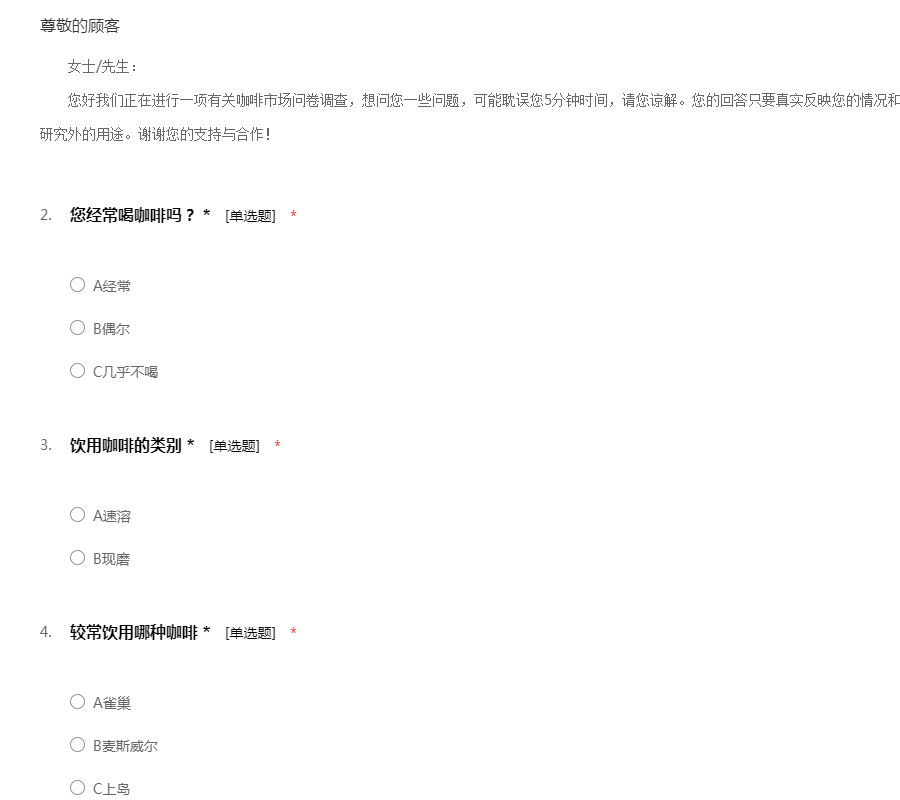 咖啡市场调查问卷