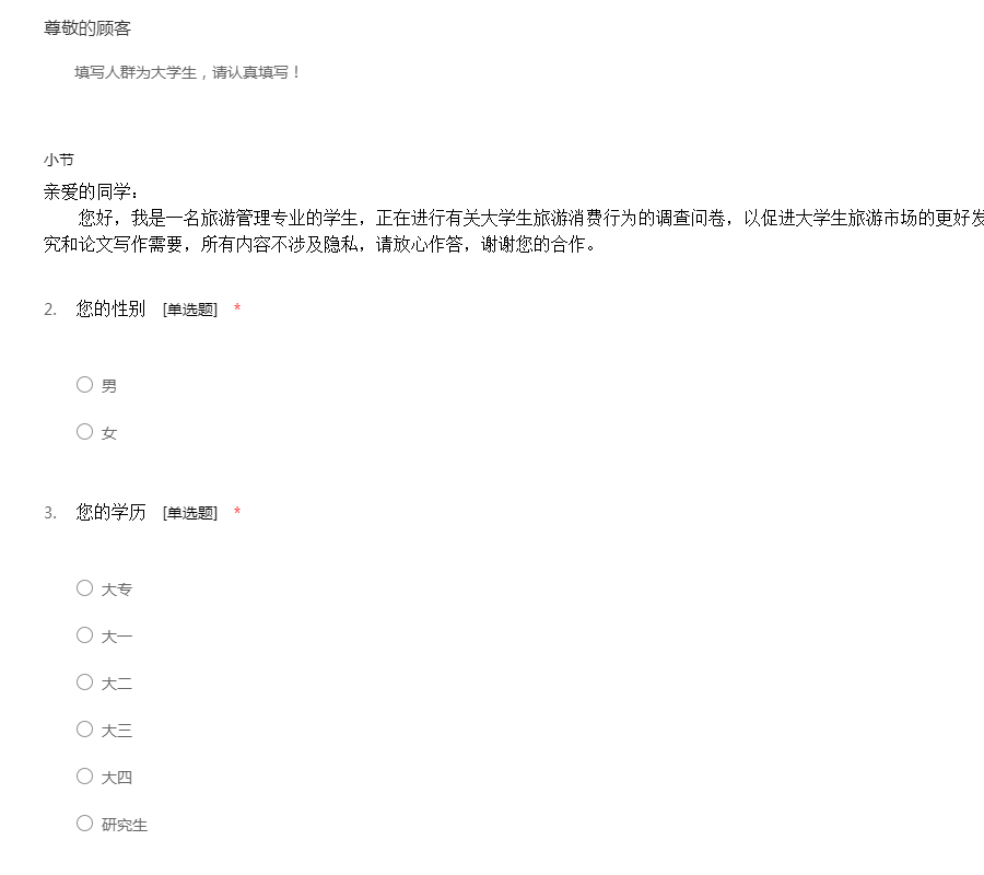 本次问卷调查意在了解当代大学生的恋爱实际情况,您的真实回答对我们来说十分宝贵!感谢您在百忙之中回答此卷!51调查网(我要调查网)谢谢您的参与。