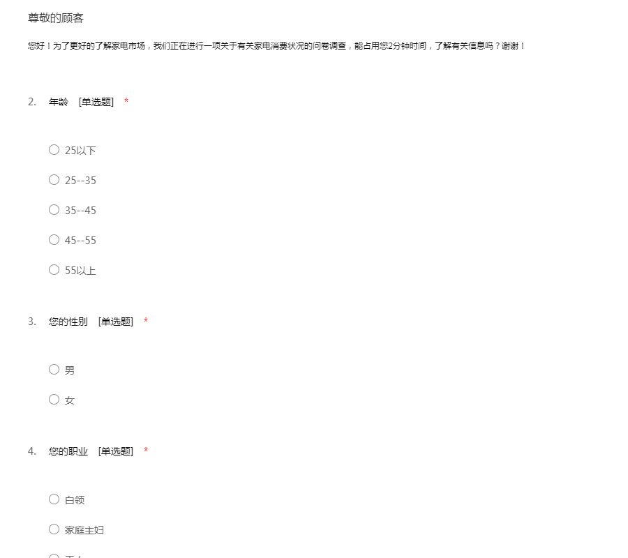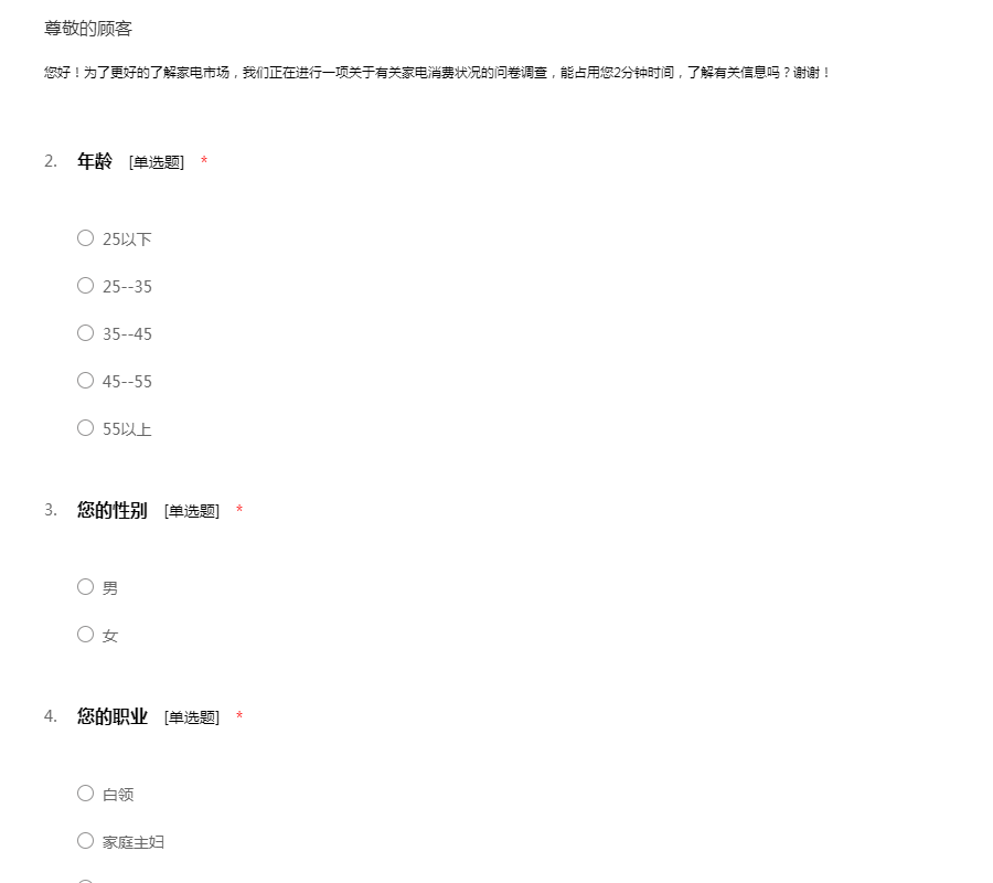 您好!为了更好的了解家电市场,我们正在进行一项关于有关家电消费状况的问卷调查,能占用您2分钟时间,了解有关信息吗?谢谢!