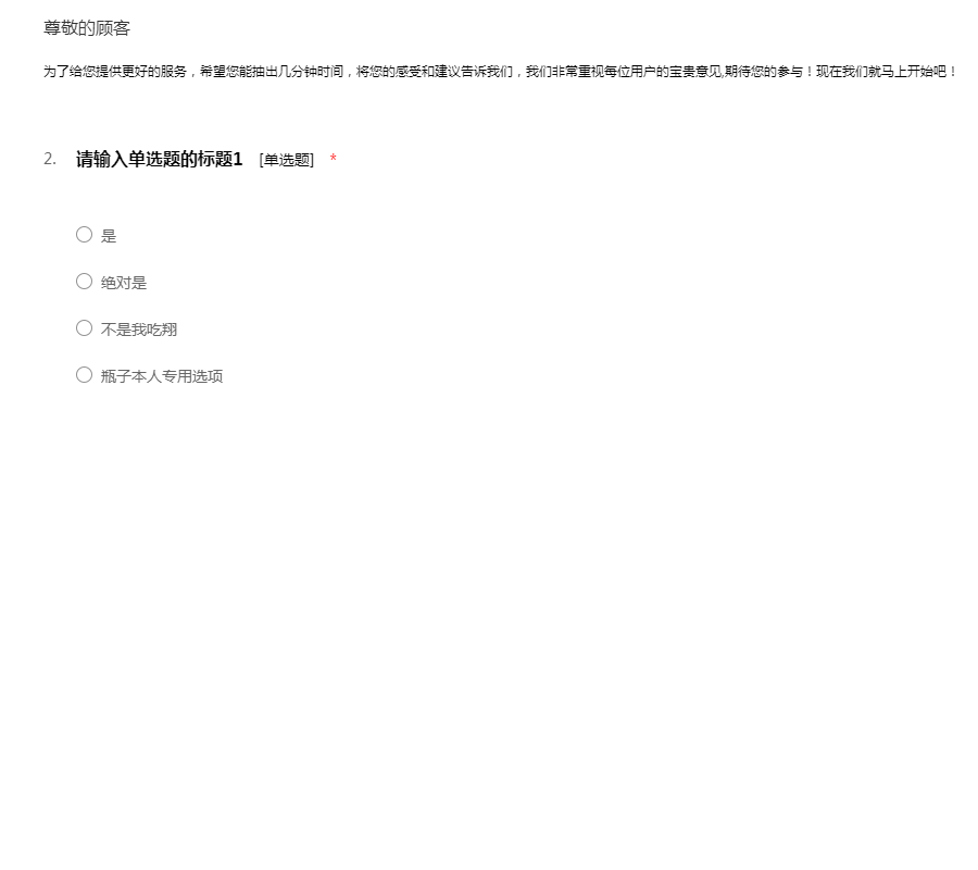 为了给您提供更好的服务,希望您能抽出几分钟时间,将您的感受和建议告诉我们,我们非常重视每位用户的宝贵意见,期待您的参与!现在我们就马上开始吧!