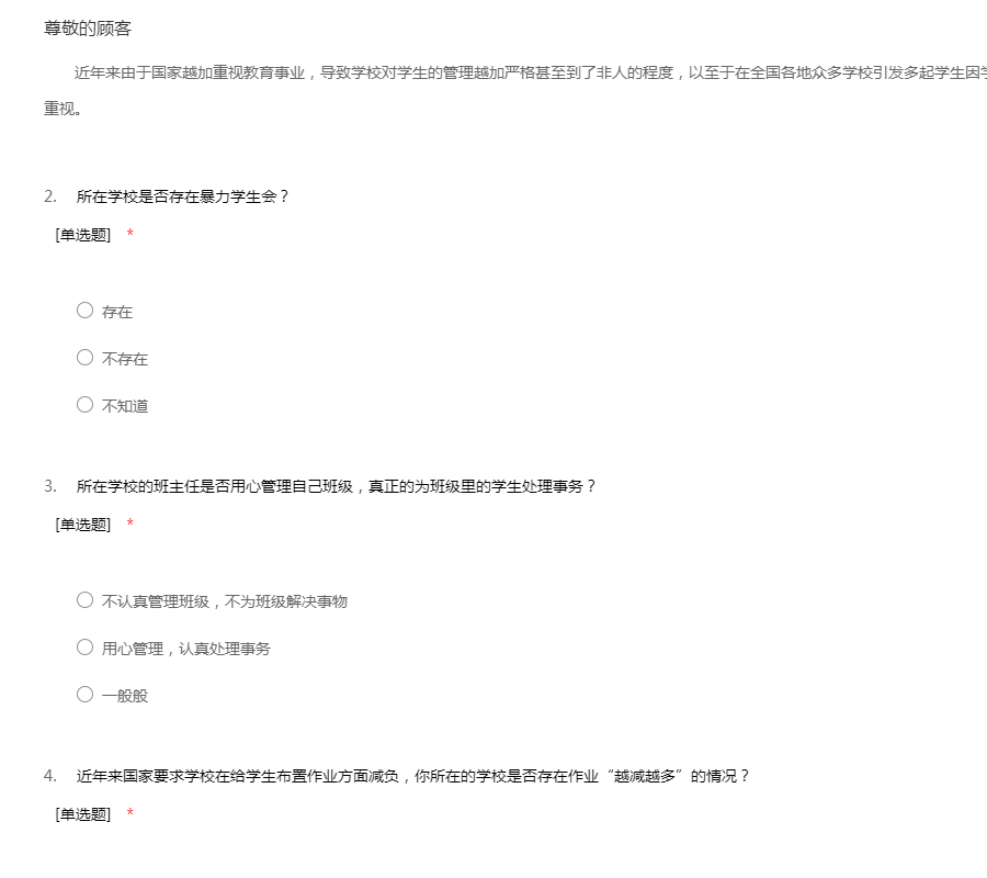 您好!为更好的了解我校的办学水平,了解家长对教育的需求,进一步提高服务质量,我们真诚邀请您参与我们的问卷调查(不记名调查),您的意见和建议是我们不断进步的永恒动力!