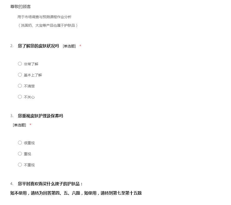 用于市场调查与预测课程作业分析 (洗面奶、大宝等产品也属于护肤品)
