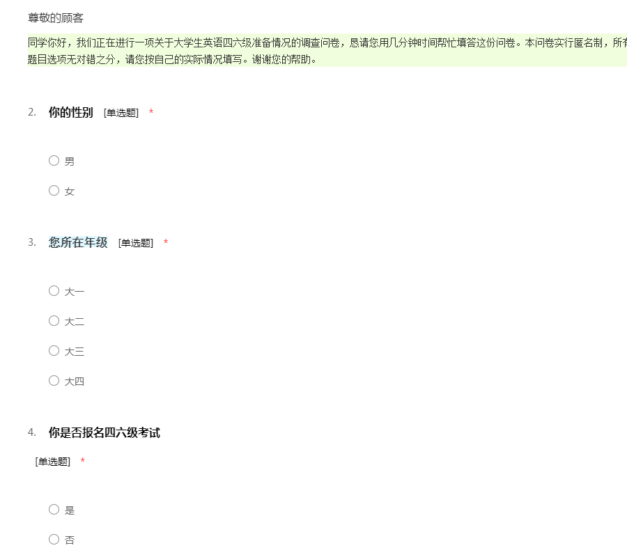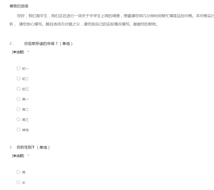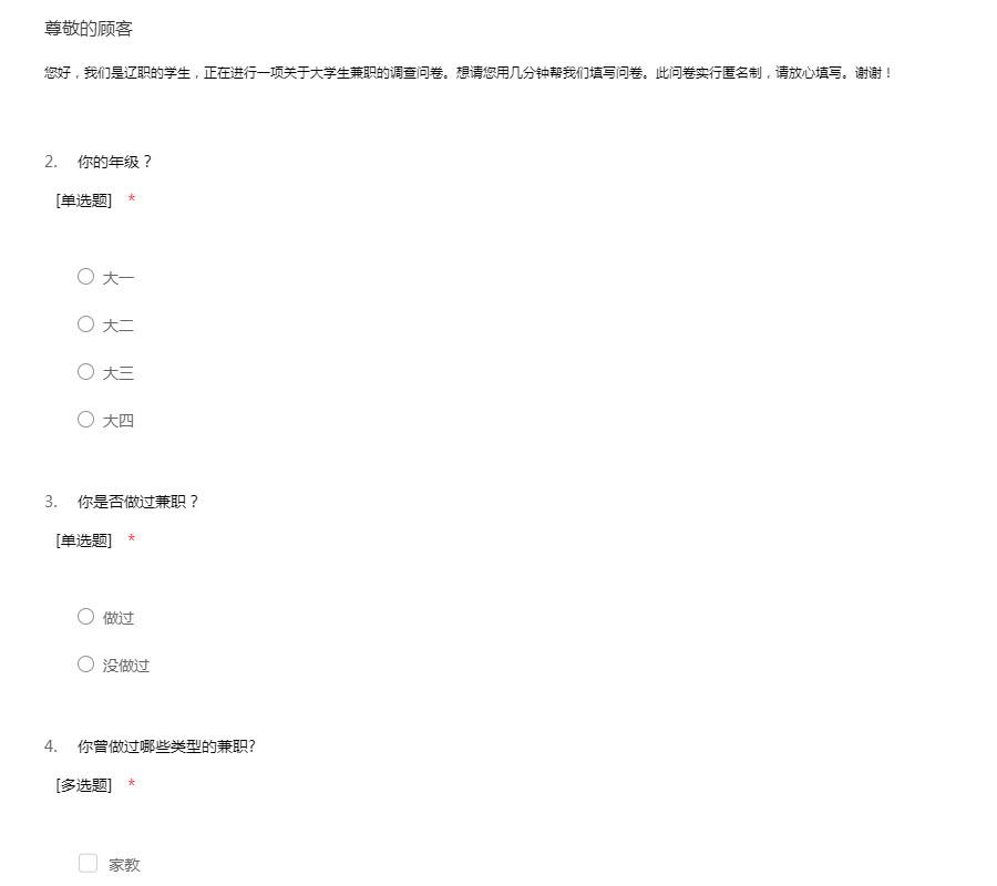 谢谢您的合作!(问卷中涉及钱均指人民币)