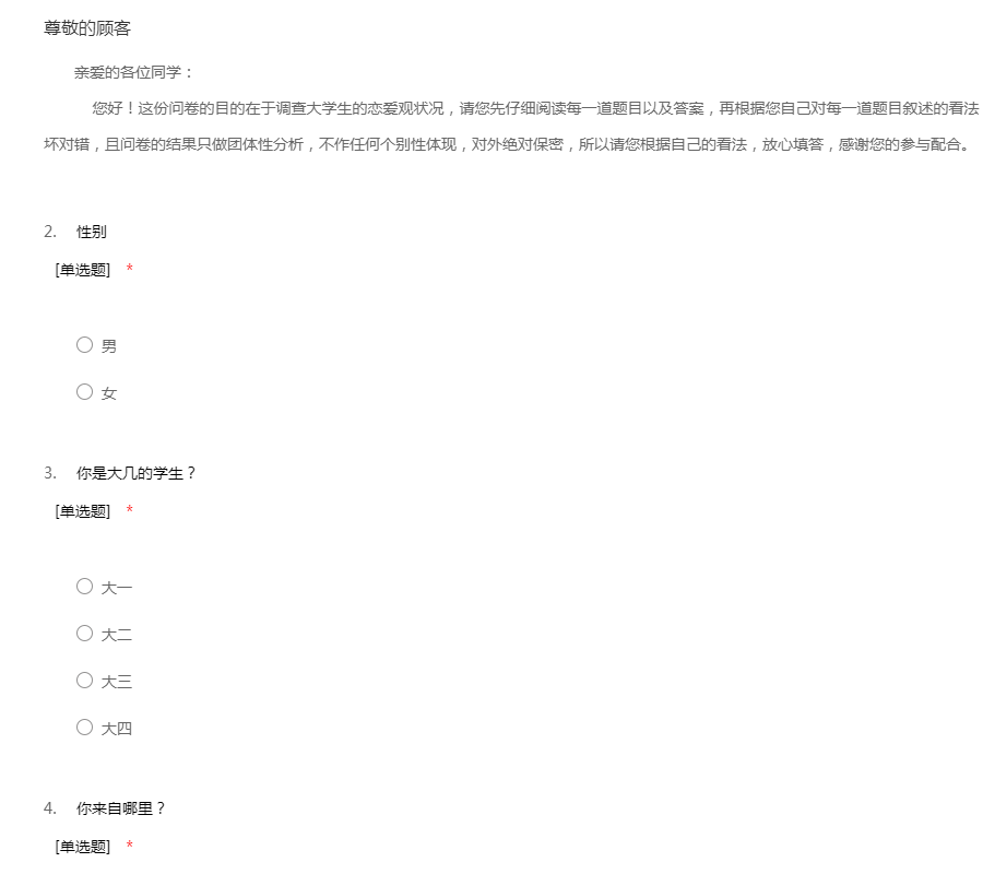 大学生恋爱市场调查问卷