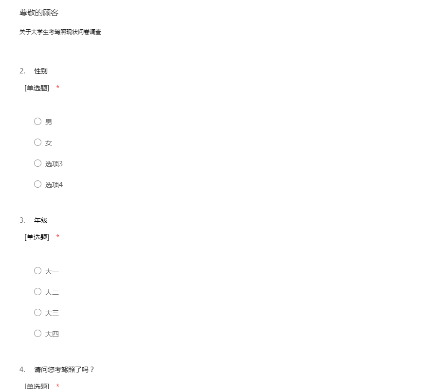 大学生考驾照问卷调查