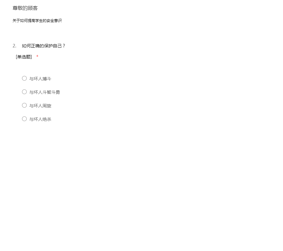 您好!为更好的了解我校的办学水平,了解家长对教育的需求,进一步提高服务质量,我们真诚邀请您参与我们的问卷调查(不记名调查),您的意见和建议是我们不断进步的永恒动力!
